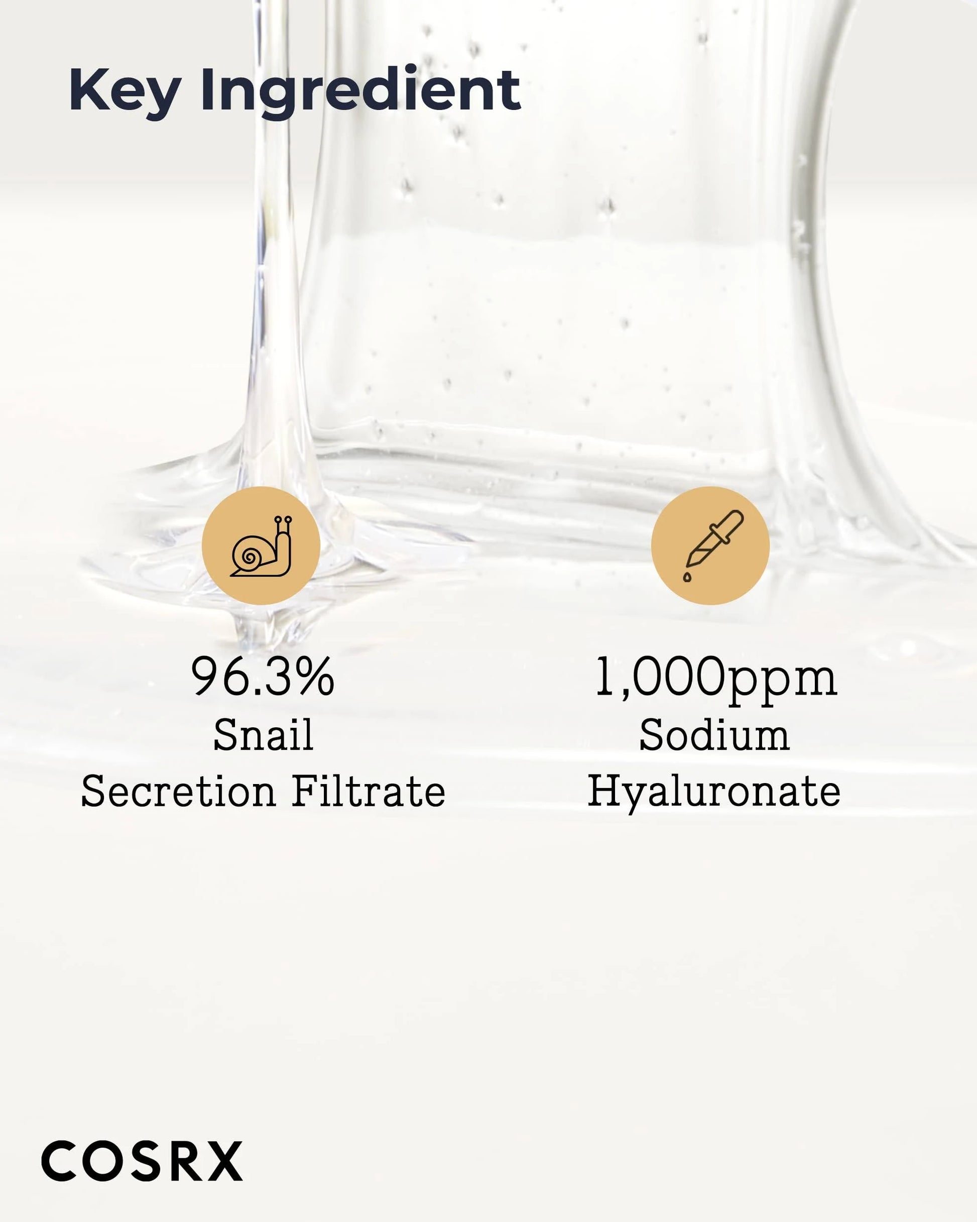 Enriquecido con un 96,3% de filtrado de secreción de caracol que mejora la piel.